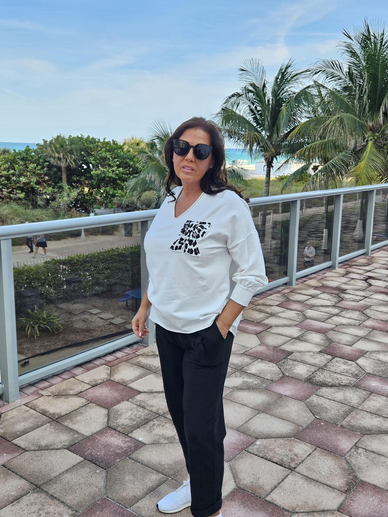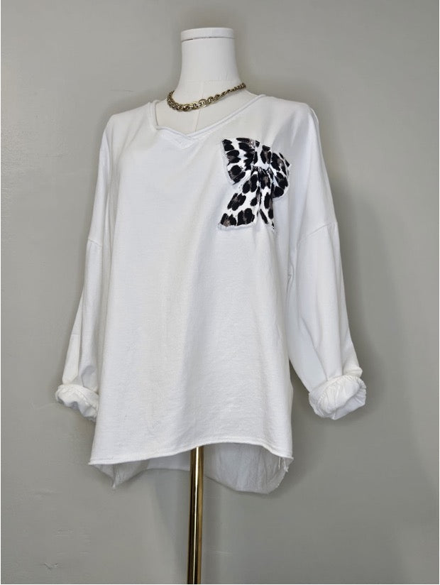 Style 1074 White v-nk with animal print applique'